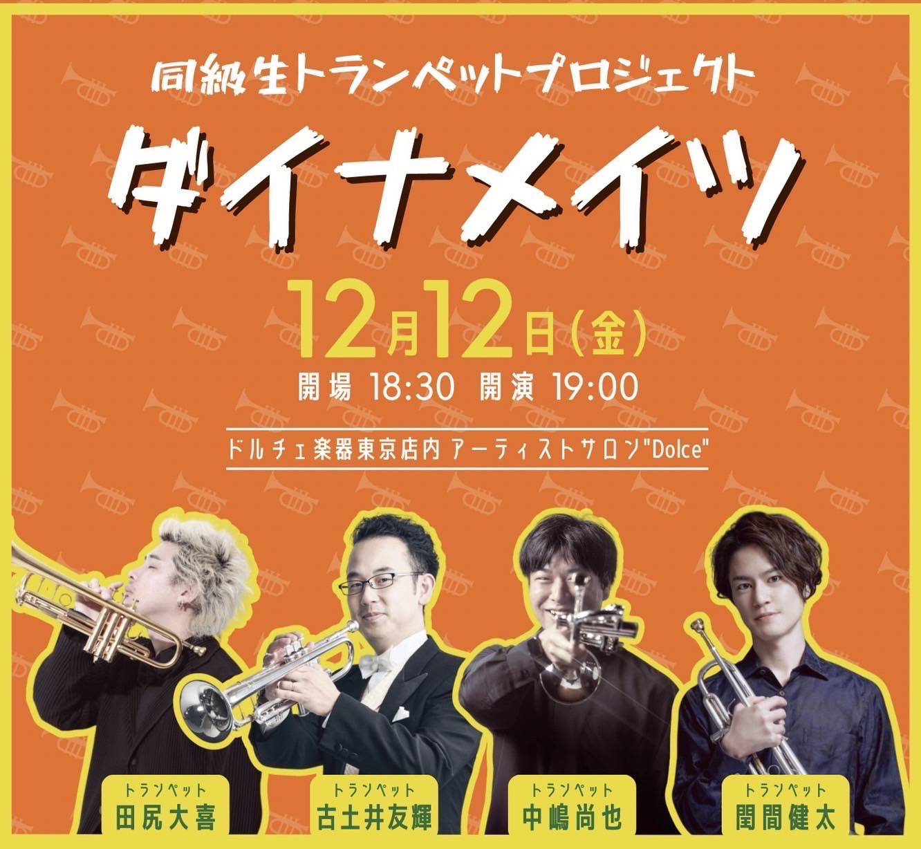 [ 同級生トランペットプロジェクト「ダイナメイツ」ドルチェ楽器東京店内 アーティストサロン”Dolce” ]