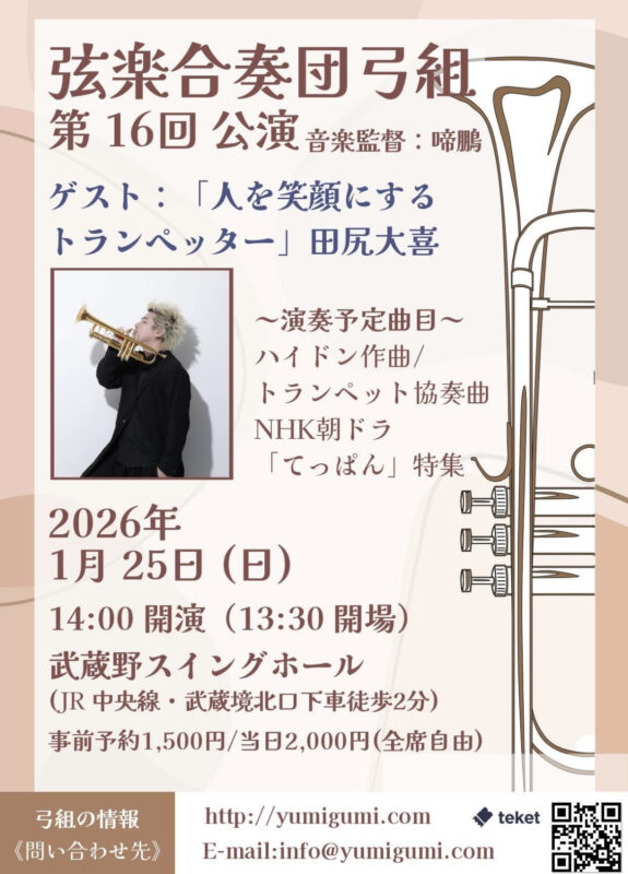 1/25に開催される尊敬する啼鵬さんが音楽監督でいらっしゃる弦楽合奏団弓組のリハーサル。